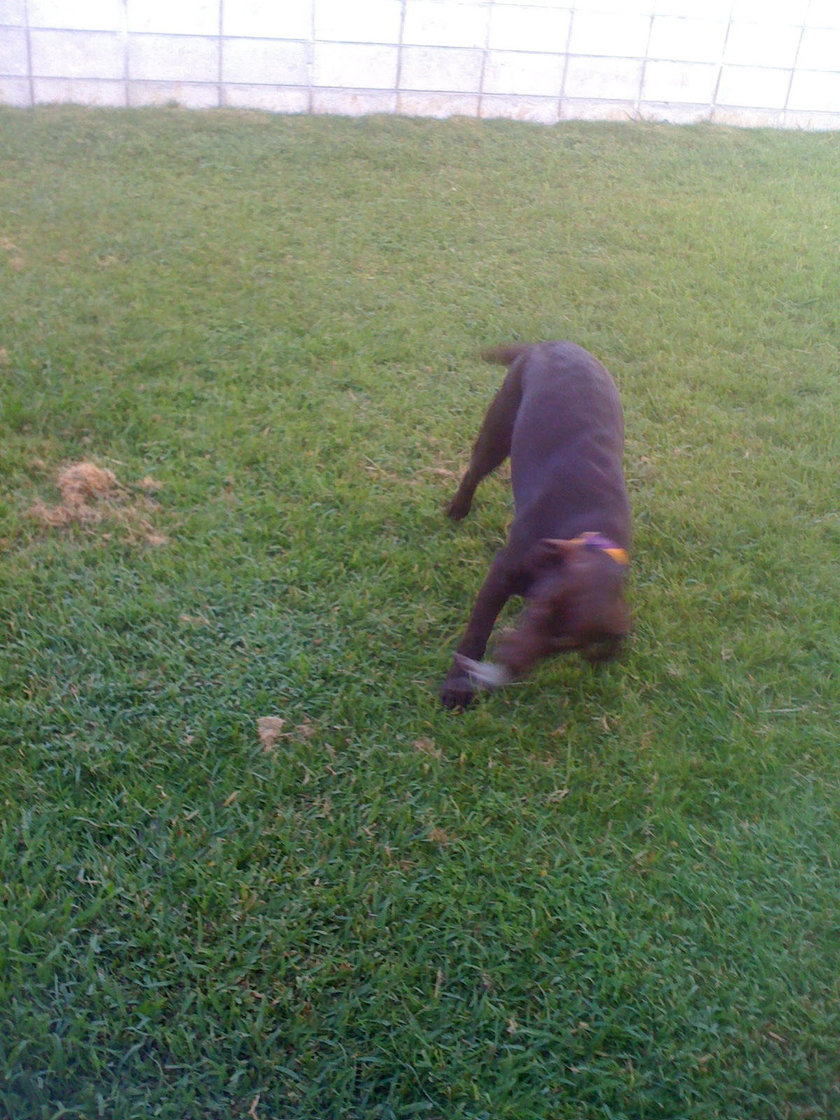 I've noticed an increase in rodent body parts in my yard and parking lot over the past few weeks--I think Piper is a hunter. Eeww. Below is a picture of Piper with the "toy" in her mouth. Trust me, it looked way bigger in real life. I had to capture the moment on my iphone and email Mark what he was missing already. He may be going to to a third world country, but I bet he won't hold any dead rats this week.